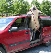 It is necessary in the East to deworm by subcutaneous injection with Dectomax every 5-6 weeks or Invermectin every 30 days to avoid the meningeal worm parasite. This parasite is carried by deer but is actually ingested by the llama eating small ground snails (the secondary host) on leaves and grasses. Meningeal worm is deadly in the llama, causing paralysis and death. Also deworming with a paste (Safeguard) for tapeworms periodically ensures good health. |