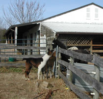 Fencing should be dog proof if possible—this is more important if you have young llamas. A small 12-20 foot square catch pen will make it easier to catch llamas for feeding, vet work or handling. Most llamas will not submit to being “caught” in a larger area. |