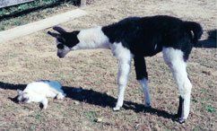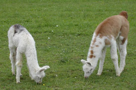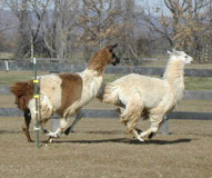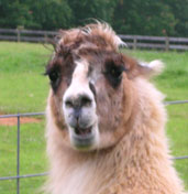 Humming is a common manner of communication between llamas, and indicates a variety of moods from contentedness to aggression. Males will also scream as part of their competitive behavior, as well as chasing and wrestling with each other. Another interesting llama expression is the shrill, alarm call given at the sight of a strange animal (especially dogs) or a frightening situation. |