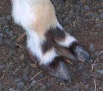 If your llamas are pastured on hard or rocky ground, you may only have to trim their toenails once or twice a year. It's not a hard task to do with sheep toenail nippers, but ask your breeder for a lesson before attempting it on your own. Llamas are generally very protective of their feet and many do not like to have their legs touched. |
