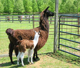 You need to have some sort of fenced pasture area before bringing your new llama(s) home. Fencing can be woven wire, cattle wire panels, board fencing, chain link or electric. Barbed wire is not good for safety reasons. |