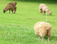 Many new owners acquire their first llama as a guardian animal for sheep or goats. Be aware that not all geldings and/or females make good guards. Many are just too dependent on their own herd companionship. Intact males can be dangerous as sheep or goat guards as they may try to breed the others and suffocate them. |