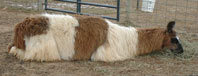 It is advisable to shear all llamas for the summer months, even the ones with light wool. It is not just the heat that can cause heat stress, but the humidity as well. If you are uncomfortable outside in the sun, your llama can be too, even though you may see him out there basking upside down in the direct sunlight. |